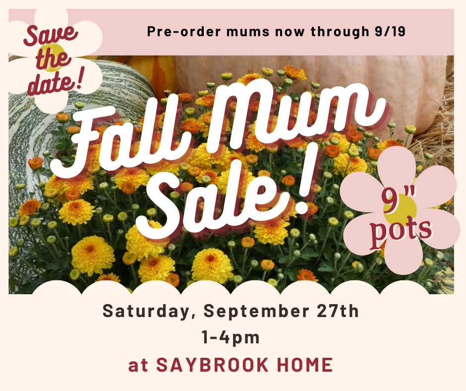 - Pick-up your order September 27 at Saybrook Home from 1-4pm